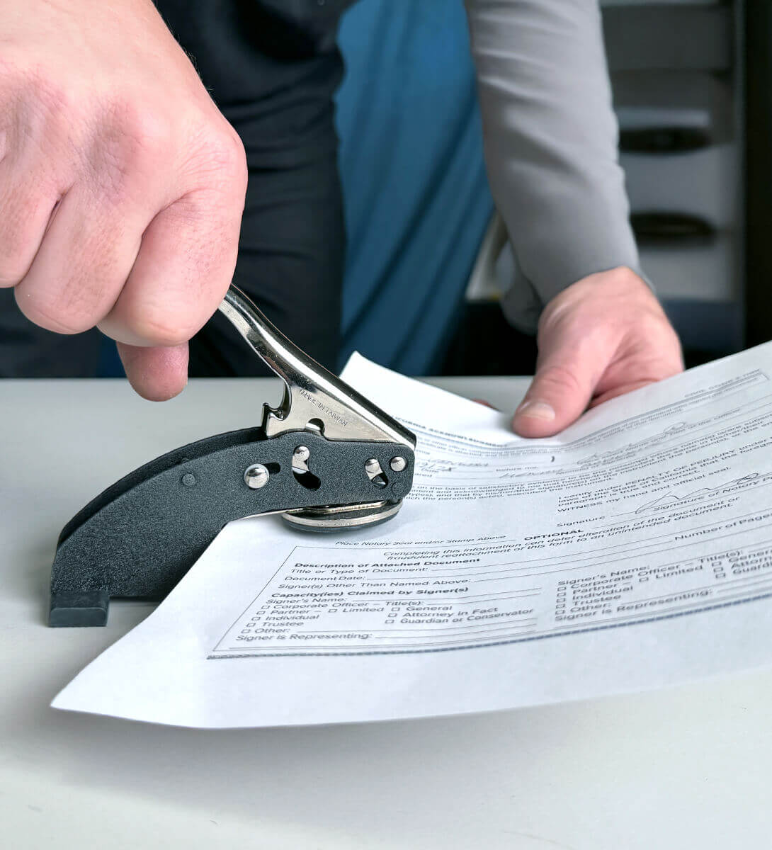 While some states require a raised embossed seal, Notary embossers are most often paired with an inked rubber Notary seal. To make embossments photographically reproducible, use an embossment inker to darken the impression.
